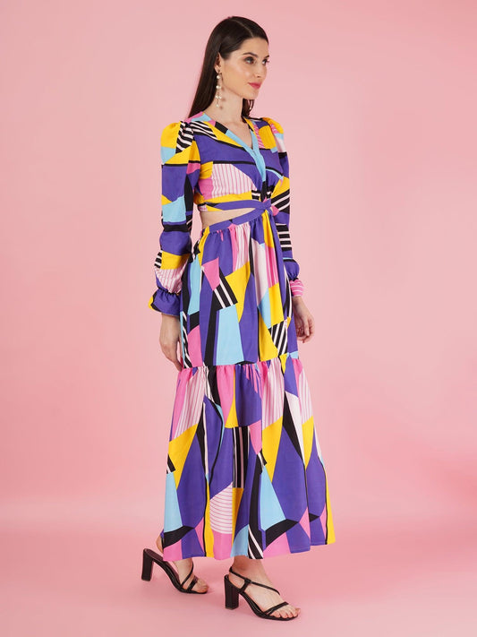 V-Neck Fit & Flare Dress featuring Waist Cutouts