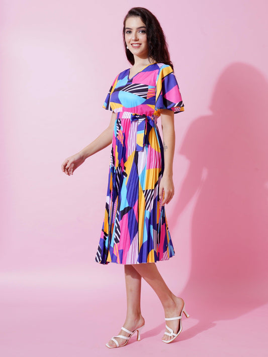 Elevate your wardrobe with this beautiful dress that combines fashion and comfort effortlessly. Its pleated design adds a touch of femininity, while the round neck top and flared sleeves ensure a stylish look. Made from high-quality fabric, this dress offers breathability and comfort all day long. Perfect for any occasion, whether it's a formal event or a casual outing. Upgrade your style with this Vapoury A-line Dress.