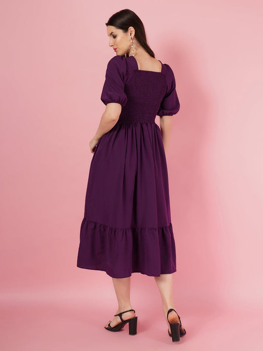 Elevate your look effortlessly with this must-have midi dress. Its premium fabric exudes softness and lightweight elegance, while the smocked design ensures a comfortable and flexible fit. Perfect for the warm seasons, this dress is the epitome of comfort and style.