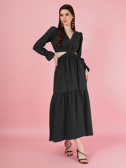Rosery V-Neck Long Dress With Back Cut-Out